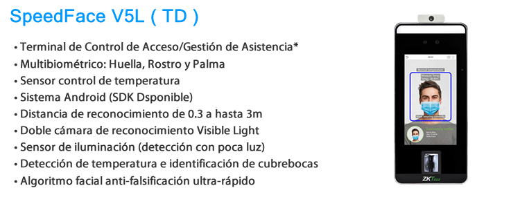 * Precio del modelo SpeedFace V5L ( TD ), consulte con nosotros para otros modelos.